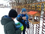 В рамках этой акции воспитанниками кружка «Лесной дозор» была организована заготовка корма (ягод рябины, семян подсолнечника, тыквы и т.п.). На осенних каникулах дети совместно с родителями занимались изготовлением кормушек для зимующих птиц, затем кормушки разместили на территории школы. С наступлением зимы школьники регулярно наполняют кормушки кормом. Ежедневная подкормка птиц на участке создает хорошие условия для систематических наблюдений за ними. Ребята из кружка «Лесной дозор» наблюдая за птицами, заметили, что, птицы привыкают к постоянным местам кормежки и посещают их с точностью часов и сделали несколько фотографий на память.