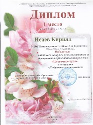 На VI Всероссийском Ступинском фестивале-конкурсе народного прикладного творчества сельских школьников "Возвращение к истокам", проводимым Арзамасским филиалом Национального исследовательского Нижегородского государственного университета им. Н.И.Лобачевского ученица Волкова Елизавета, ученица 1 класса, заняла 2 место в направлении "Художественная роспись". Лиза была награждена дипломом 2 степени, памятной медалью и подарком. Художественный руководитель участника фестиваля-конкурса Наталья Владимировна Абрамова, учитель начальных классов, получила сертификат, а коллектив школы и Фигина Галина Александровна, директор, отмечена благодарственным письмом.